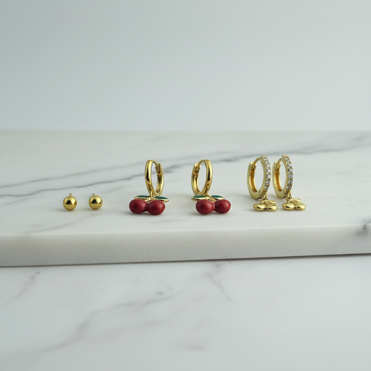 Cherry Gold Hoop Earrings Set – Cute Dainty Earrings for Women & Girls LE10274