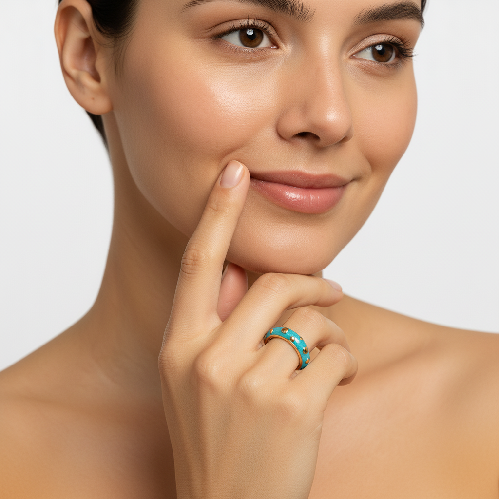 Vibrant and elegant — this blue enamel and gold adjustable ring features delicate heart-shaped accents that add a playful yet refined touch. Crafted with Lunavia’s signature attention to detail, it’s the perfect everyday statement piece for modern minimal luxury.