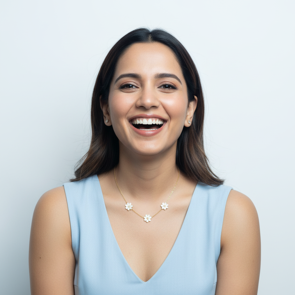 Playful trio of white enamel daisies spaced along a delicate gold chain; cheerful, lightweight, and perfect for everyday outfits, spring edits, or gifting; pairs easily with bead chains and chokers to create a bright, layered look with fresh feminine appeal.