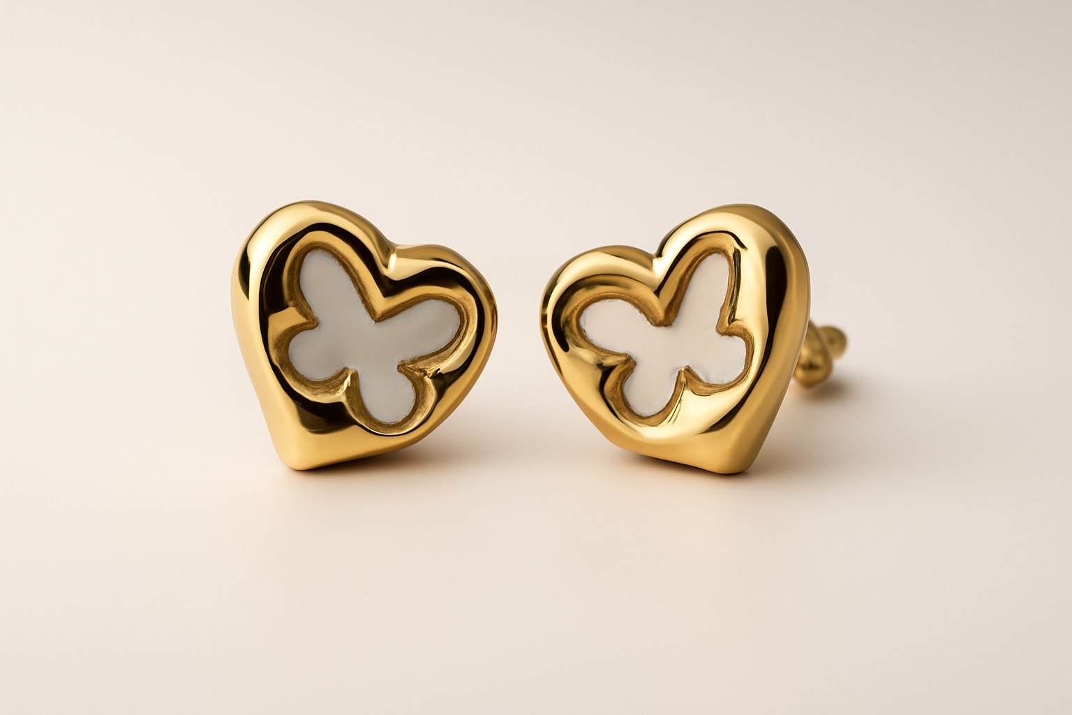 Spread joy with gold heart butterfly stud earrings featuring delicate white enamel inlays. Perfect for girls and women seeking cute, everyday jewelry. Shop whimsical designer studs—premium quality, secure checkout, and fast delivery for a touch of wonder.