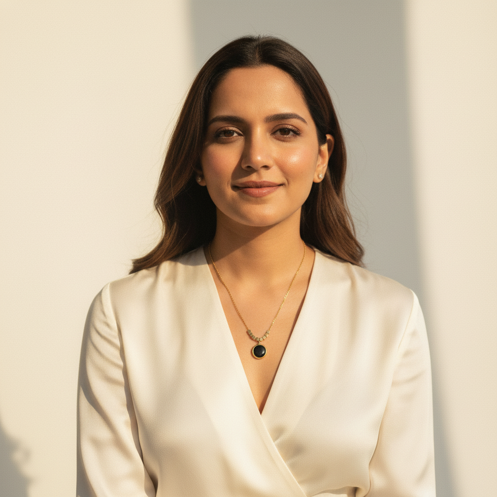 Make a modern statement with Lunavia's gold round onyx pendant necklace accented by sculpted links. Sleek, versatile, and easy to style from desk to dinner, it adds bold contrast to any look. Ideal for gifting, layering, and everyday polish with timeless appeal. Bold contrast that defines every outfit.