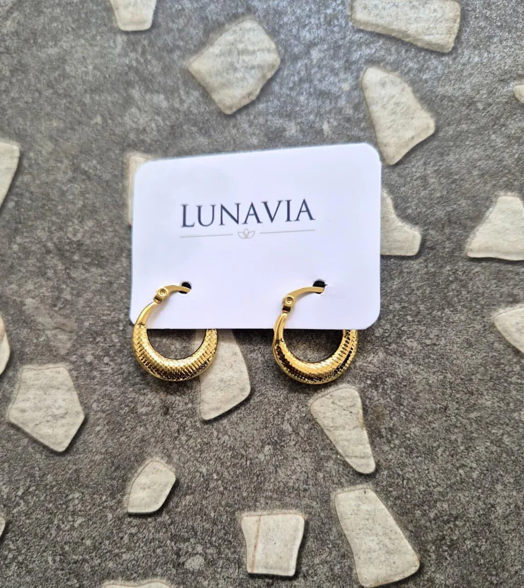 Embrace timeless elegance with Lunavia’s gold-plated textured hoop earrings. Featuring a hammered finish and bold circular shape, these statement hoops exude sophistication — perfect for elevating both traditional and modern outfits with effortless charm.