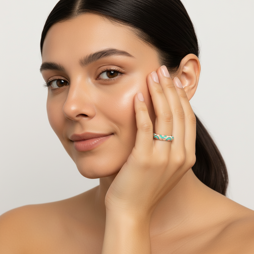 Artful and elegant — this pastel enamel and gold adjustable ring features a unique pink, mint, and white pattern inspired by modern design. A Lunavia statement piece that blends color, craftsmanship, and luxury for a timelessly chic look.
