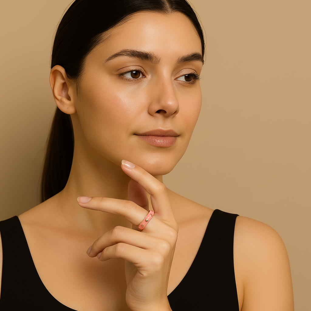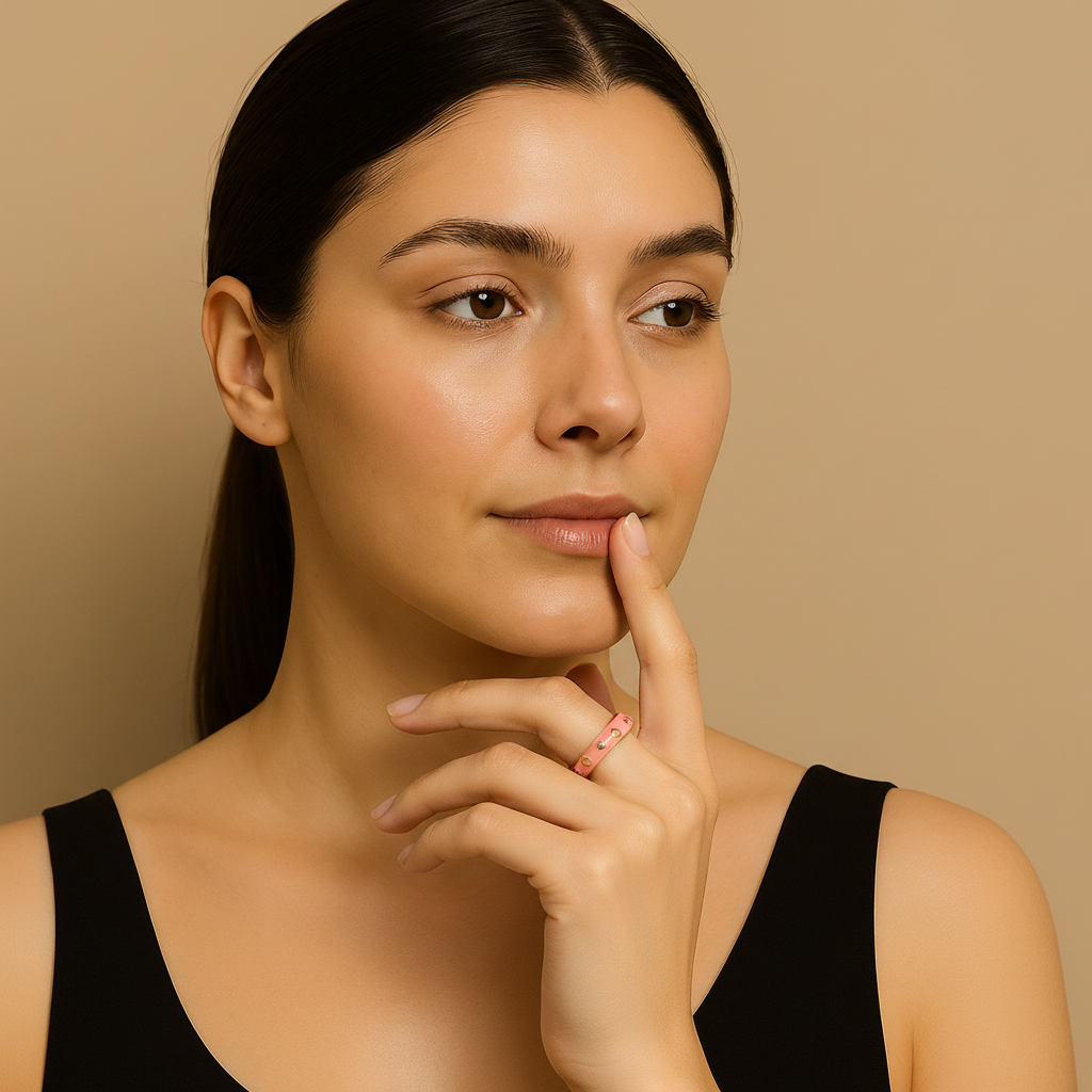 Playful yet refined — this pink enamel and gold adjustable ring features delicate heart-shaped accents for a romantic touch. Perfect for gifting or everyday elegance, this Lunavia design blends modern femininity with timeless luxury in one statement piece.