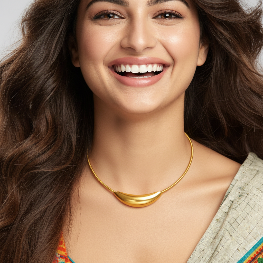 Make a statement with Lunavia’s Sculpted Gold Collar Necklace — a bold yet minimalist piece crafted with smooth, high-polish gold plating. Its fluid, crescent-inspired design adds modern sophistication to any outfit, making it the perfect choice for refined luxury and timeless style.