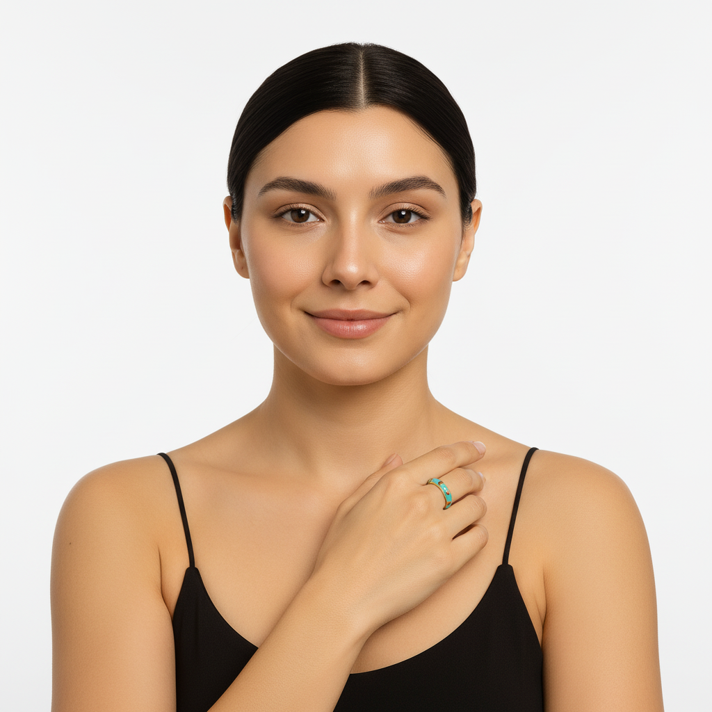 Bright and playful — this turquoise enamel and gold adjustable ring features delicate heart-shaped accents for a modern romantic touch. Crafted with precision and elegance, this Lunavia piece adds a pop of color and luxury to your everyday jewelry collection.