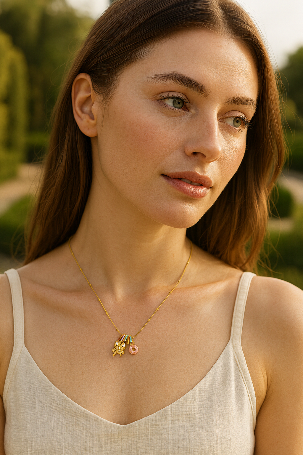 Delight little trendsetters with a playful gold kids’ charm necklace featuring a unicorn, donut, and colorful pavé rings on a beaded chain. Adjustable for comfort, hypoallergenic, and ultra-cute—ideal for birthdays, dress-up, or spreading smiles every day.